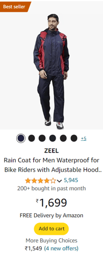 Performance: The ZEEL Rain Coat stands out for its mind-blowing performance. It effectively repels water, keeping the wearer completely dry. The lightweight design ensures that it doesn't feel bulky, making it comfortable for extended wear. The polyester material is also highly durable, ensuring that this raincoat will last for many monsoon seasons. Users have praised its breathability, which prevents overheating, and the easy-to-pack nature of the raincoat makes it convenient for carrying in a backpack or bike storage compartment.